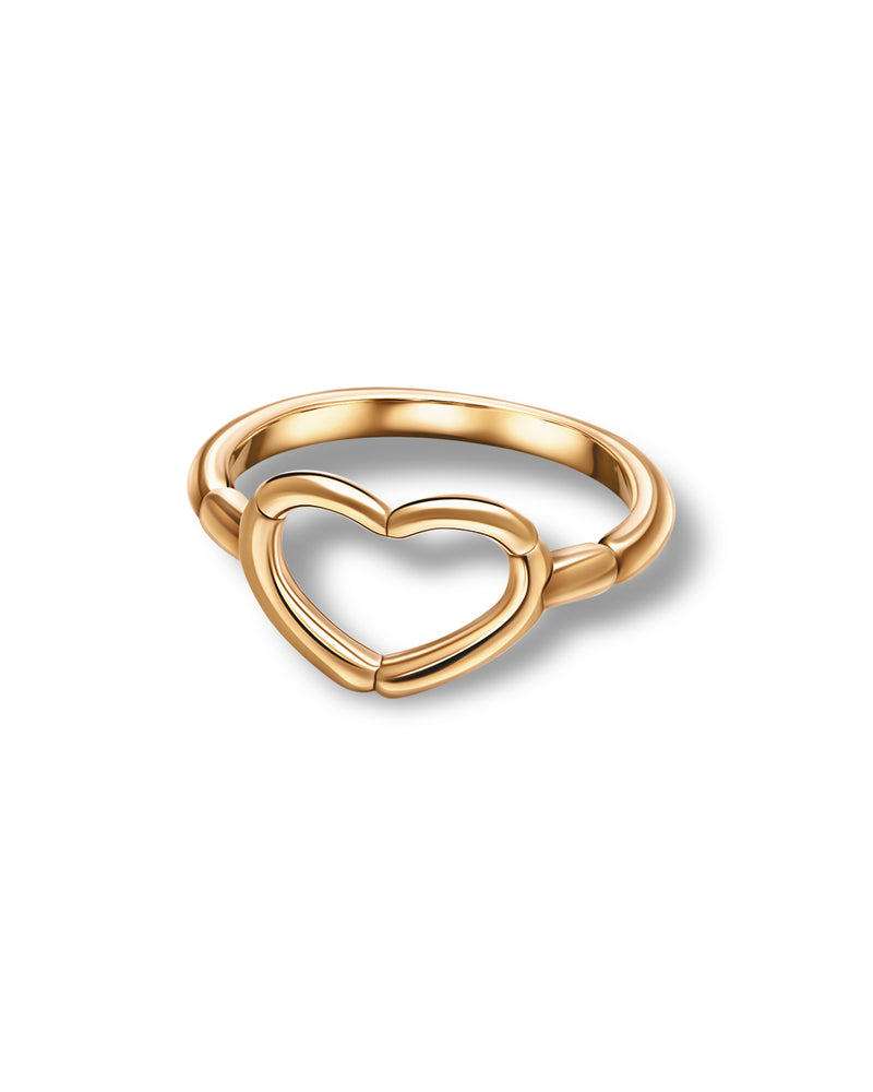 Bold and captivating, this polished gold ring is made of gold links shaping a heart. A striking piece for those who want to make a powerful statement about passion, devotion, and timeless romance.