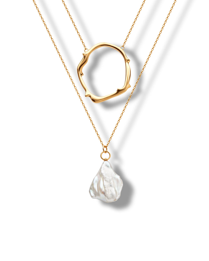 Eleganz trifft auf Schlichtheit bei der Arista-Halskette. Mit einer leuchtenden Süßwasserperle, die unter einem glatten, polierten Goldkreis hängt, verkörpert dieses zeitlose Stück mühelose Eleganz. Der Kontrast aus warmem Gold und dem sanften Schillern der Perle schafft ein beeindruckendes Gleichgewicht.