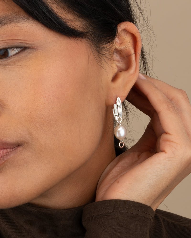 Die unregelmäßigen Formen und Größen der Barockperlen verleihen einen modernen Touch und machen diese Ohrringe zu einem auffälligen Statement-Stück, das mit seinem unverwechselbaren Charme sowohl legere als auch formelle Outfits aufwerten kann.