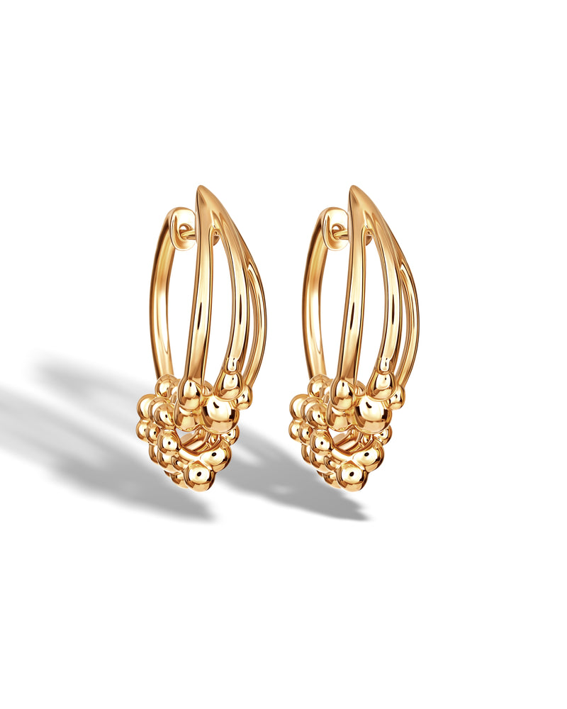Der Spaß wird mit einer verbesserten Portion Blasen verdoppelt. Gold ist das Edelmetall, das das robuste Material dieser Ohrringe bildet. Verbunden mit modernstem Design und verziert mit einem baumelnden Charm-Triplett. Eine exquisite Mischung aus moderner Ästhetik und Luxus.