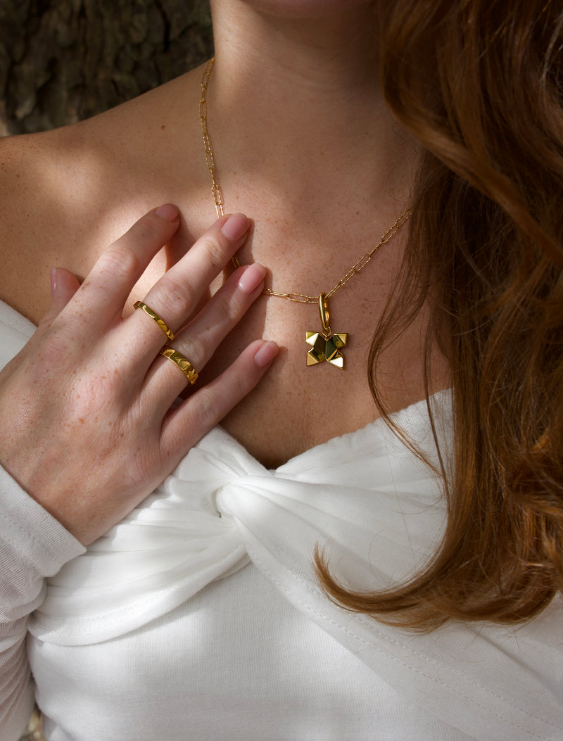 Dieser bezaubernde Anhänger ist eine anmutige Verkörperung von Schönheit und Freiheit und zeigt die komplizierten Details eines Schmetterlings im Flug. Das elegante Design strahlt die Schönheit des Geschöpfs aus und macht es zu einem Symbol der Verwandlung und Anmut. Verleihen Sie Ihrer Sammlung einen Hauch von naturinspirierter Eleganz durch die Kombination der dynamischen Bewegung eines Schmetterlings mit der strahlenden und fesselnden Präsenz des Anhängers.
