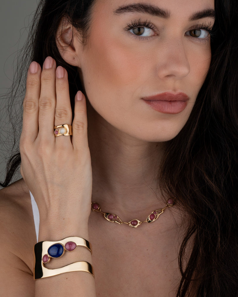 Verwöhnen Sie sich mit der verführerischen Schönheit des Coral Crest Rings, bei dem jeder schimmernde Edelstein fachmännisch in glänzendes Edelmetall eingefasst ist und so ein dunstiges Funkeln erzeugt, das den Betrachter fasziniert.