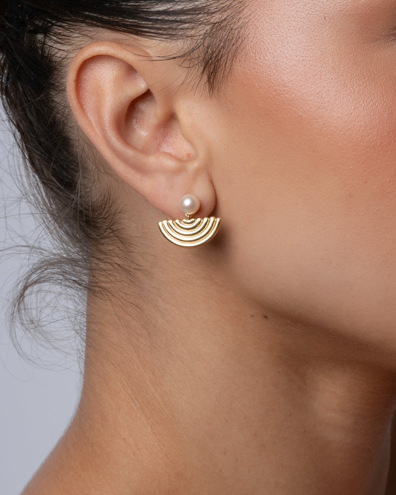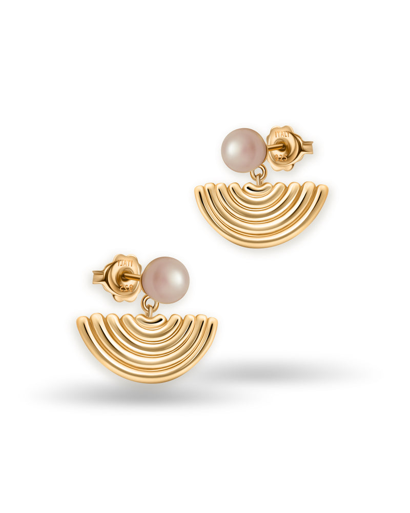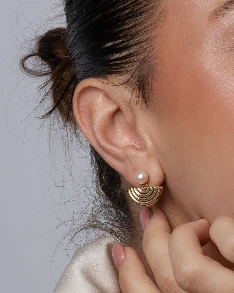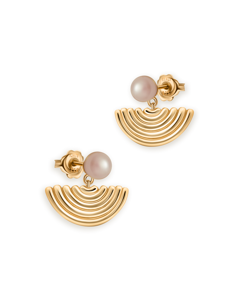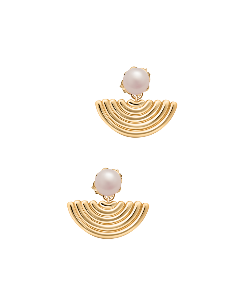 Der altmodische Stil der Perlen wird mit dem modernen Charme der schlangenförmigen Goldlinien kombiniert, was diesen Ohrringen ein einzigartiges, raffiniertes Design verleiht.