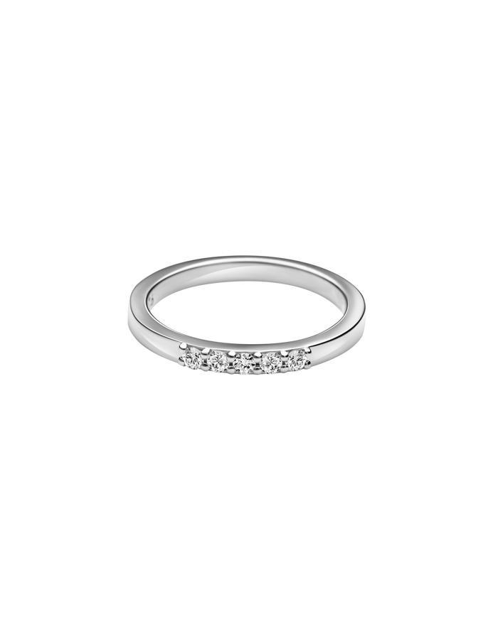 A clean band holds the tiny line of diamonds that make this ring shine. A symbol of love, commitment, or simply a stunning addition to your jewellery collection. a transcendent fusion of opulence and brilliance, the precious metal will lustrously adorn your finger, ready to embellish any outfit.