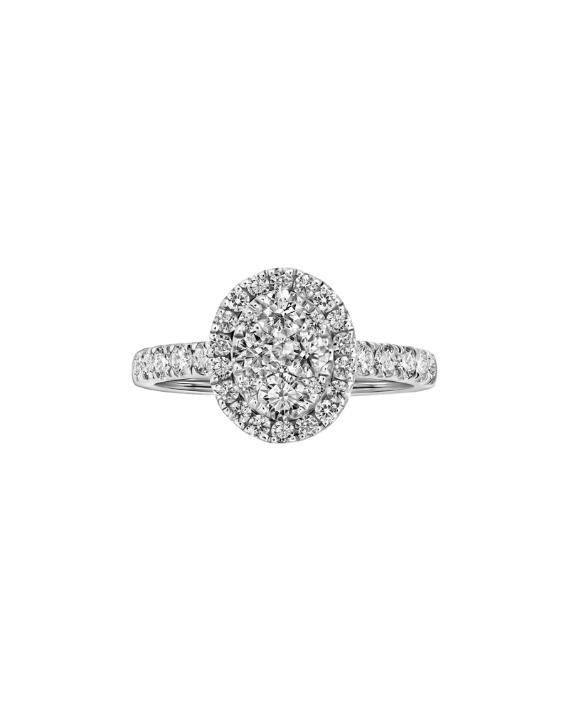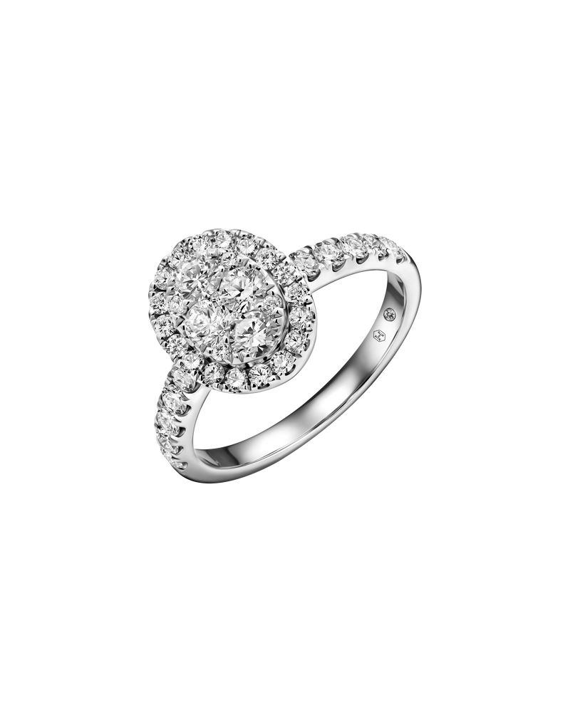 The fine metals pair stunningly with the diamonds encased along the band and around the central gemstone. It's a work of art and of craftsmanship.