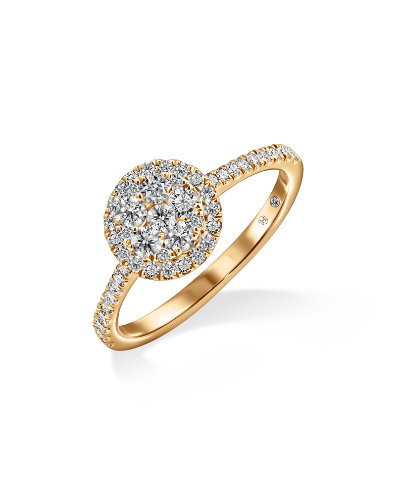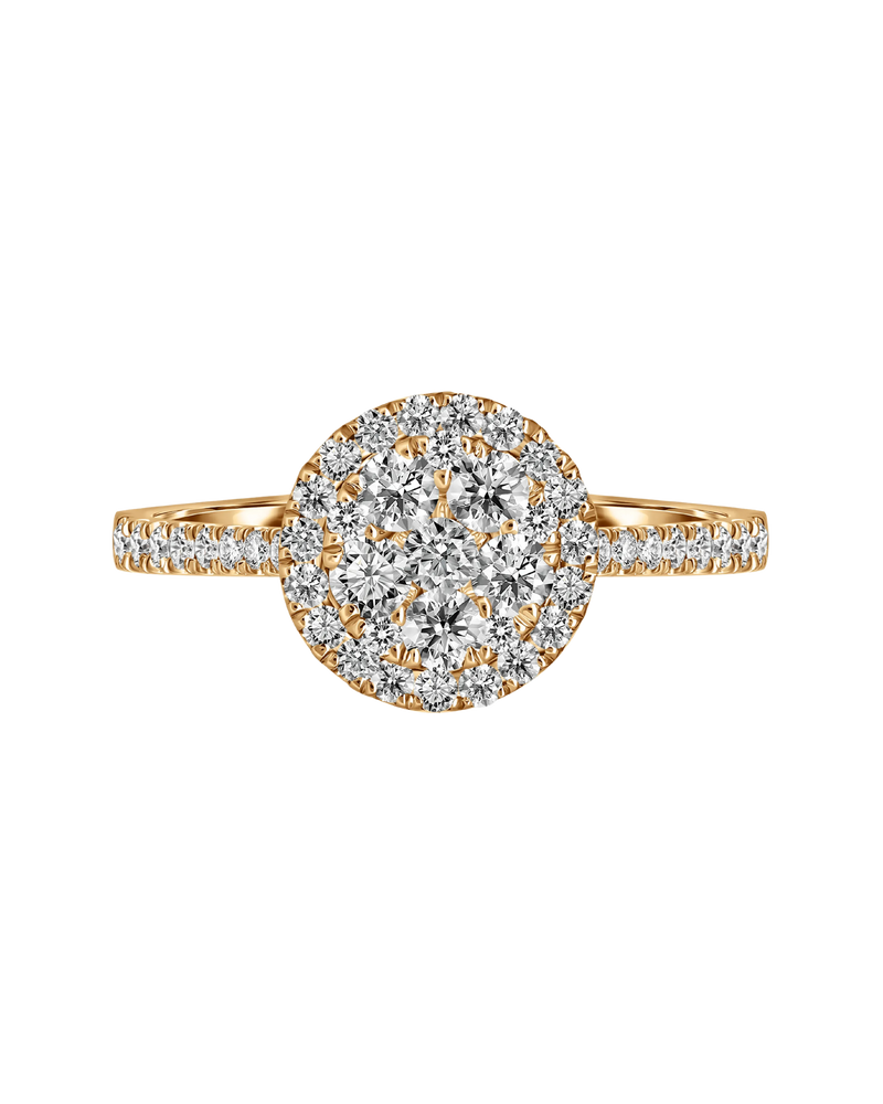 Make a lasting impression with our breath-taking ring, boasting an array of mixed-cut diamonds set in an intricate design of yellow gold, guaranteed to turn heads at every soirée.
