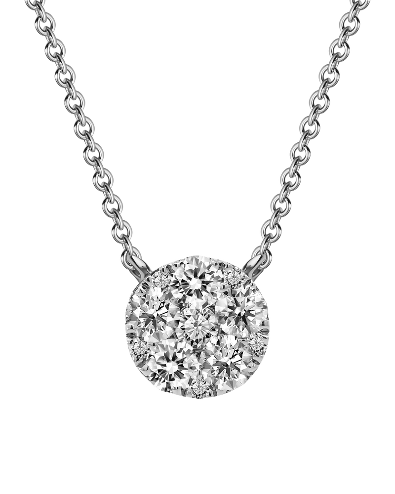The brilliance of countless diamonds merges to form a breath-taking display of radiant beauty. Each tiny diamond, meticulously set in an extraordinary pendant, twinkles with its own unique splendour. Whether chosen with gold or silver, it is a mesmerizing adornment that will captivate hearts and inspire minds.