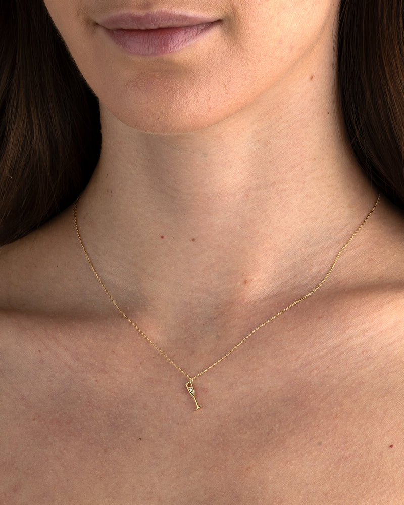 Stoßen Sie auf den Luxus dieses Schmuckstücks an. Blasen aus Diamanten und einem Glas Gold, tragen Sie diesen Anhänger und beginnen Sie die Feierlichkeiten.