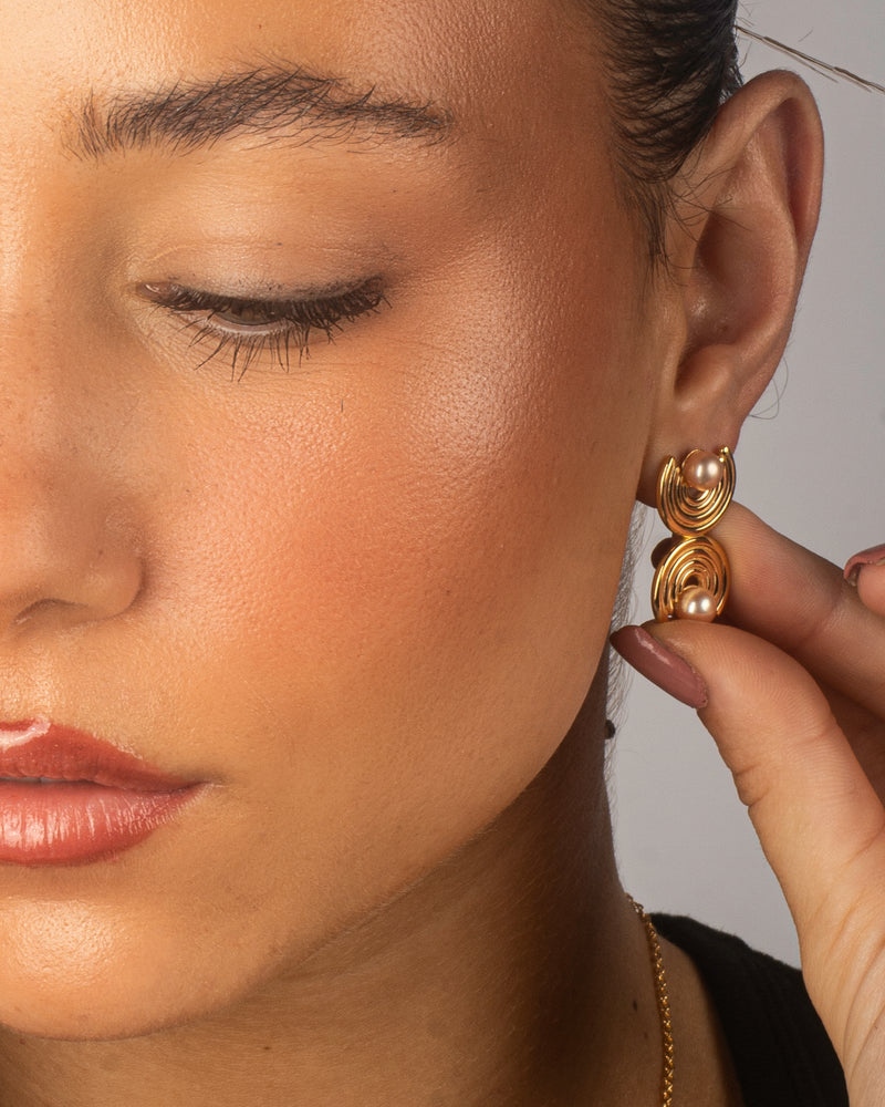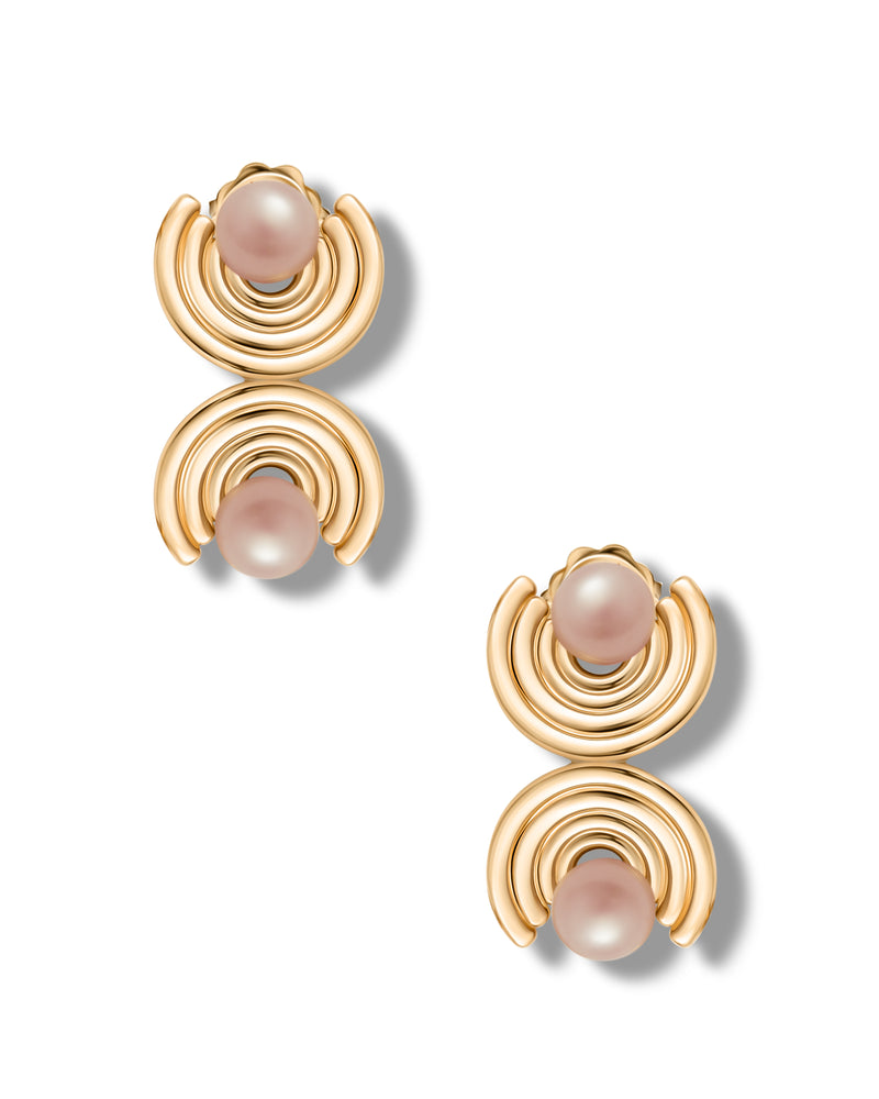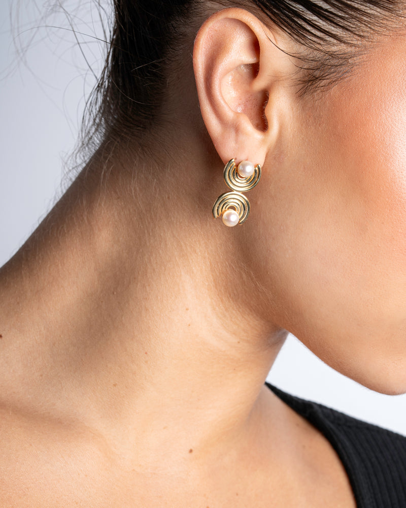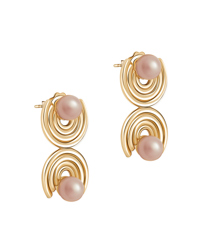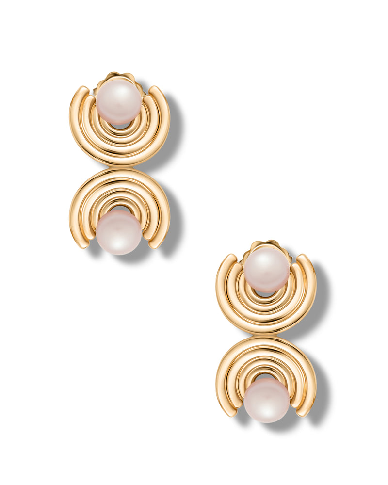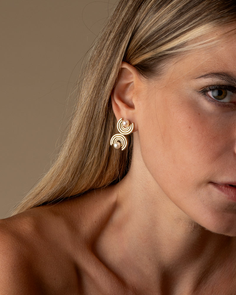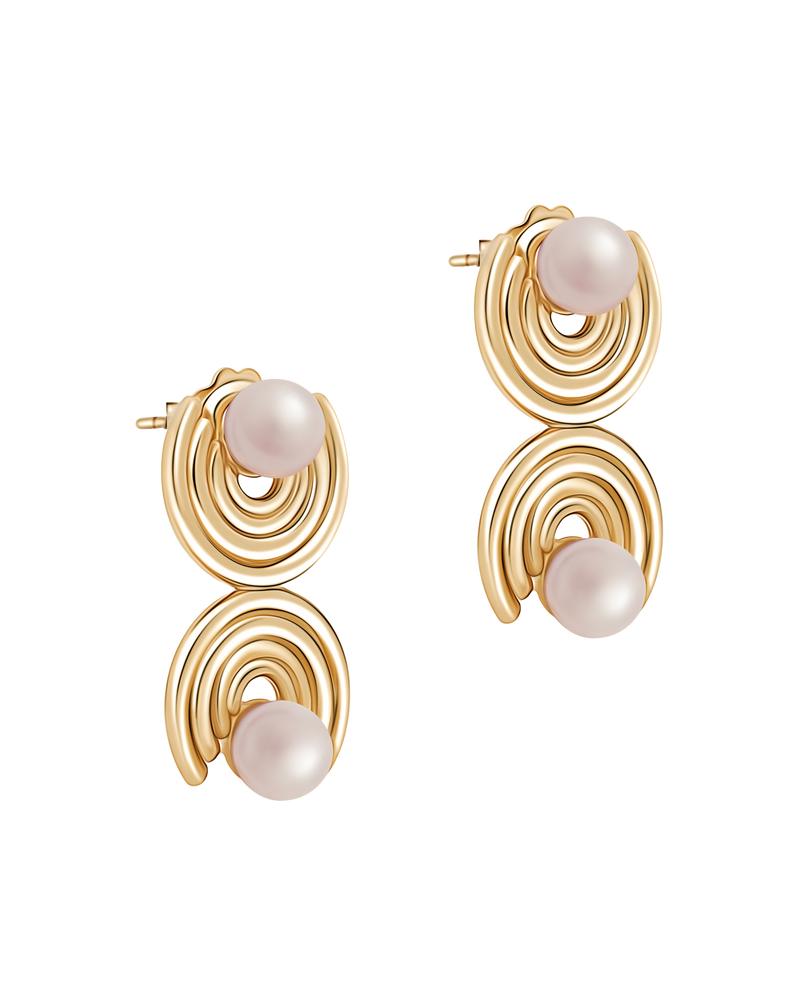 Symmetrische Schatullen aus Gold offenbaren strahlende Perlen in einem klassischen, aber modernen Design, das sowohl für formelle Anlässe als auch für den Alltag vielseitig einsetzbar ist.