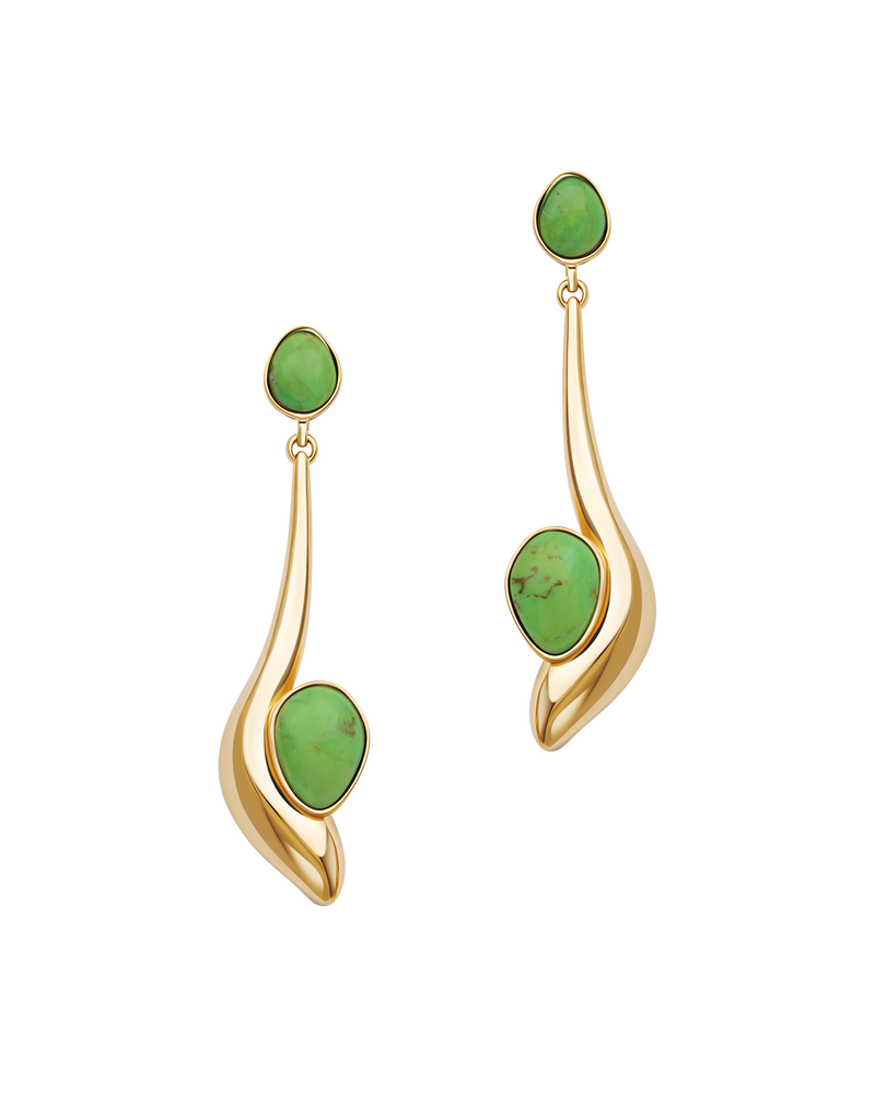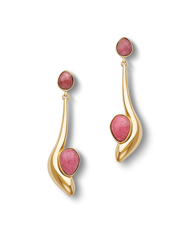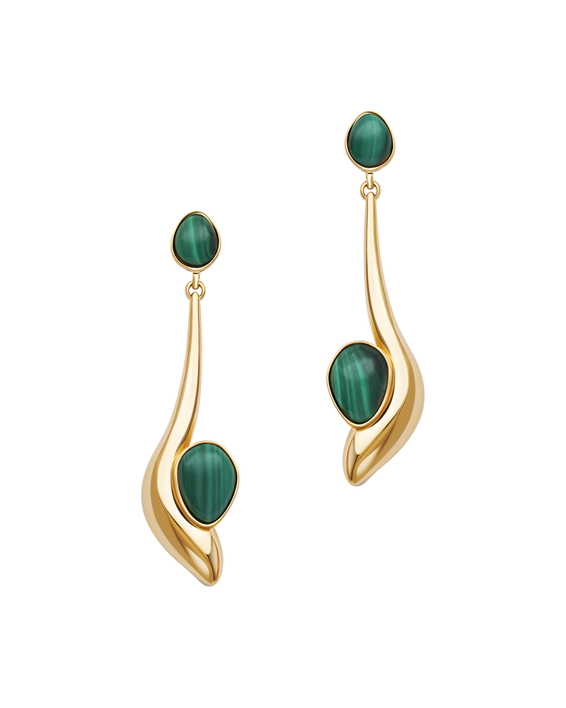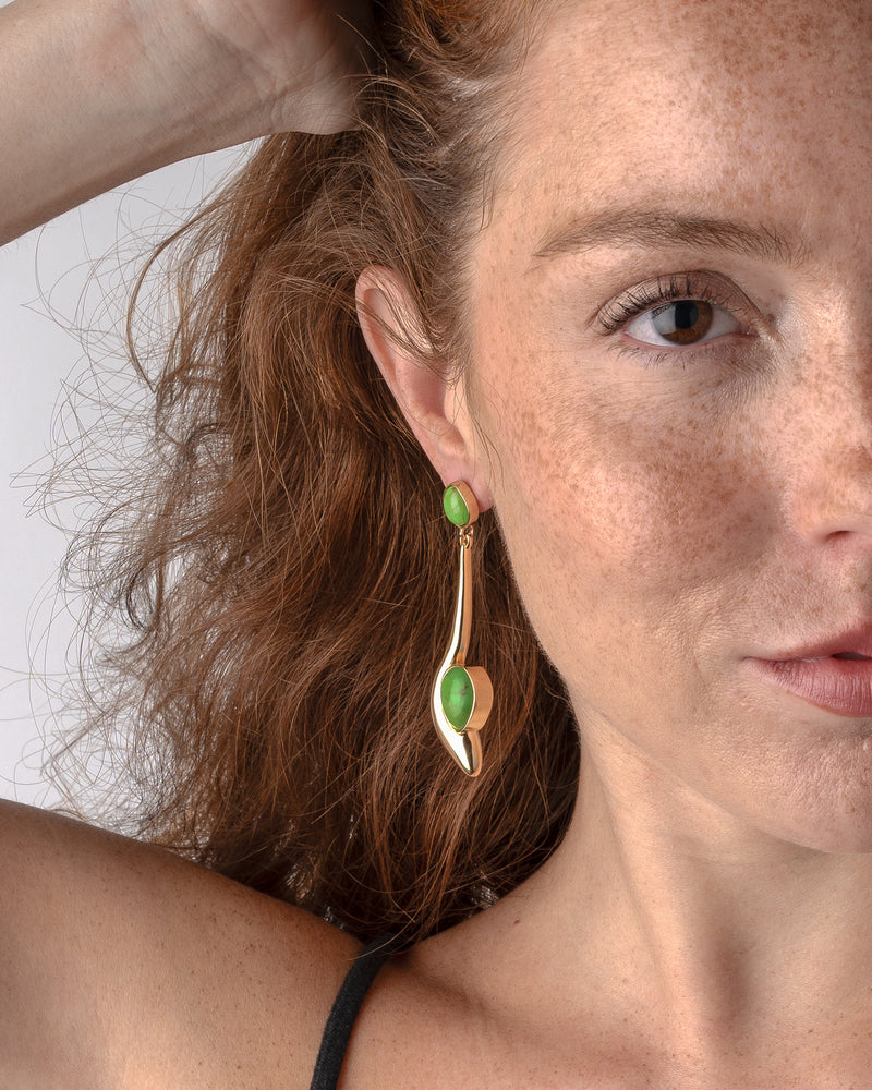 Schlanke Linien verwandeln sich in mächtige Kurven, die zum Rand hin fließen. Bunte Steine und Gold sind die perfekte Mischung, um der Fließfähigkeit einen völlig neuen Look zu verleihen.