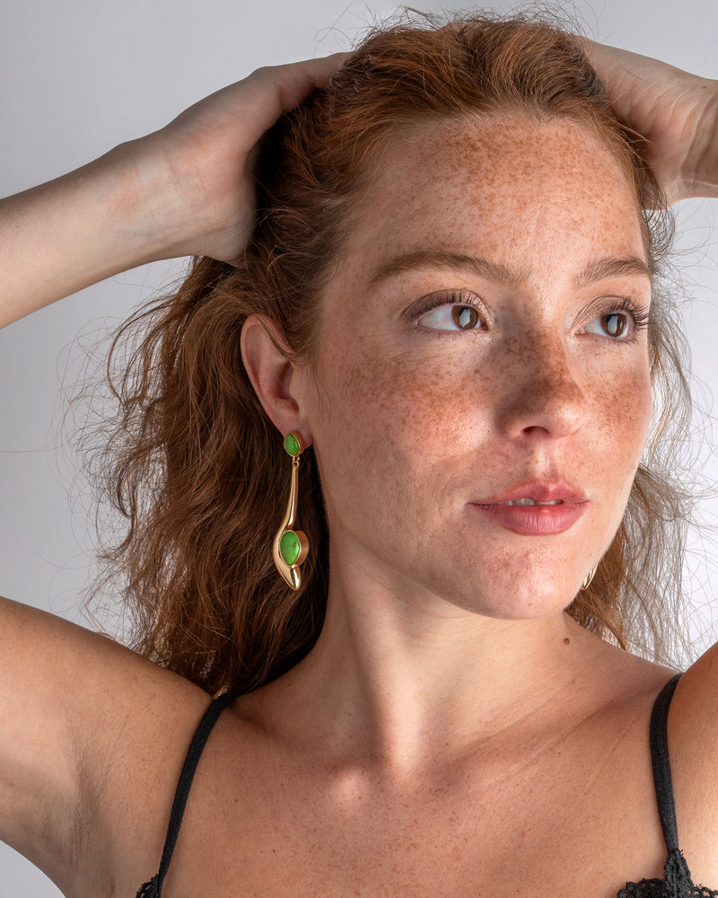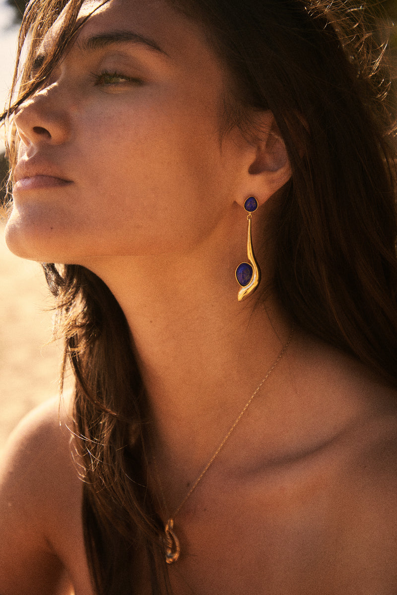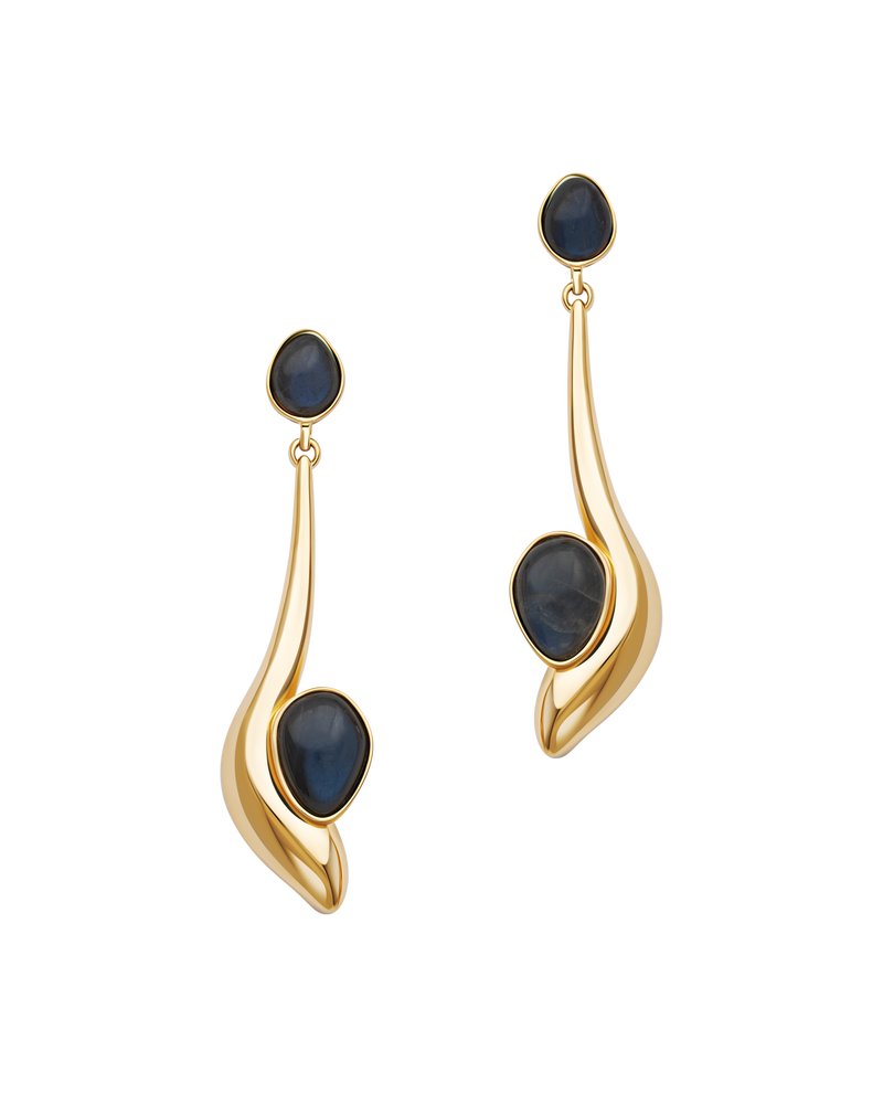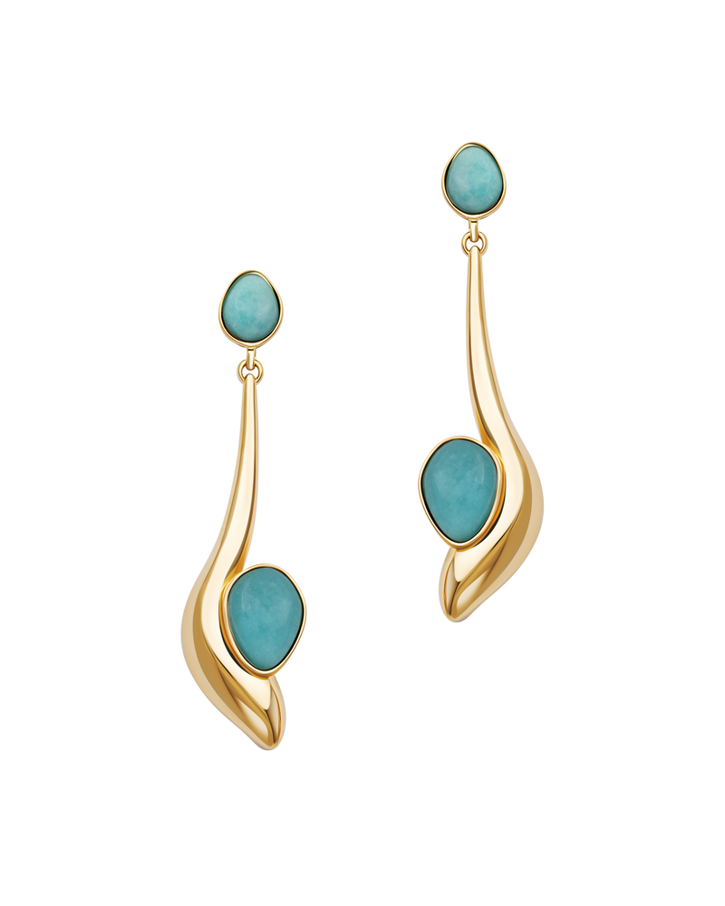 Schlanke Linien verwandeln sich in mächtige Kurven, die zum Rand hin fließen. Bunte Steine und Gold sind die perfekte Mischung, um der Fließfähigkeit einen völlig neuen Look zu verleihen.