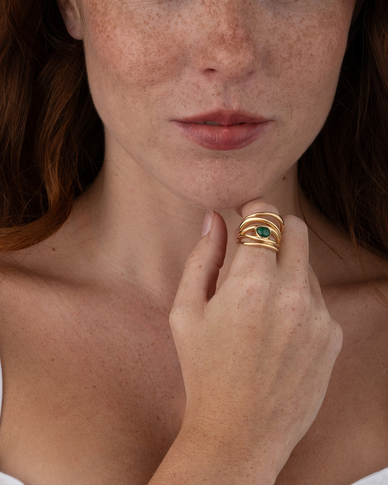 Der Eye Ring ist perfekt, um jedem Outfit einen Hauch von raffiniertem Charme zu verleihen. Er ist ein herausragendes Stück, das die Schönheit fließender Formen und natürlicher Elemente feiert und an antike Symbole erinnert.