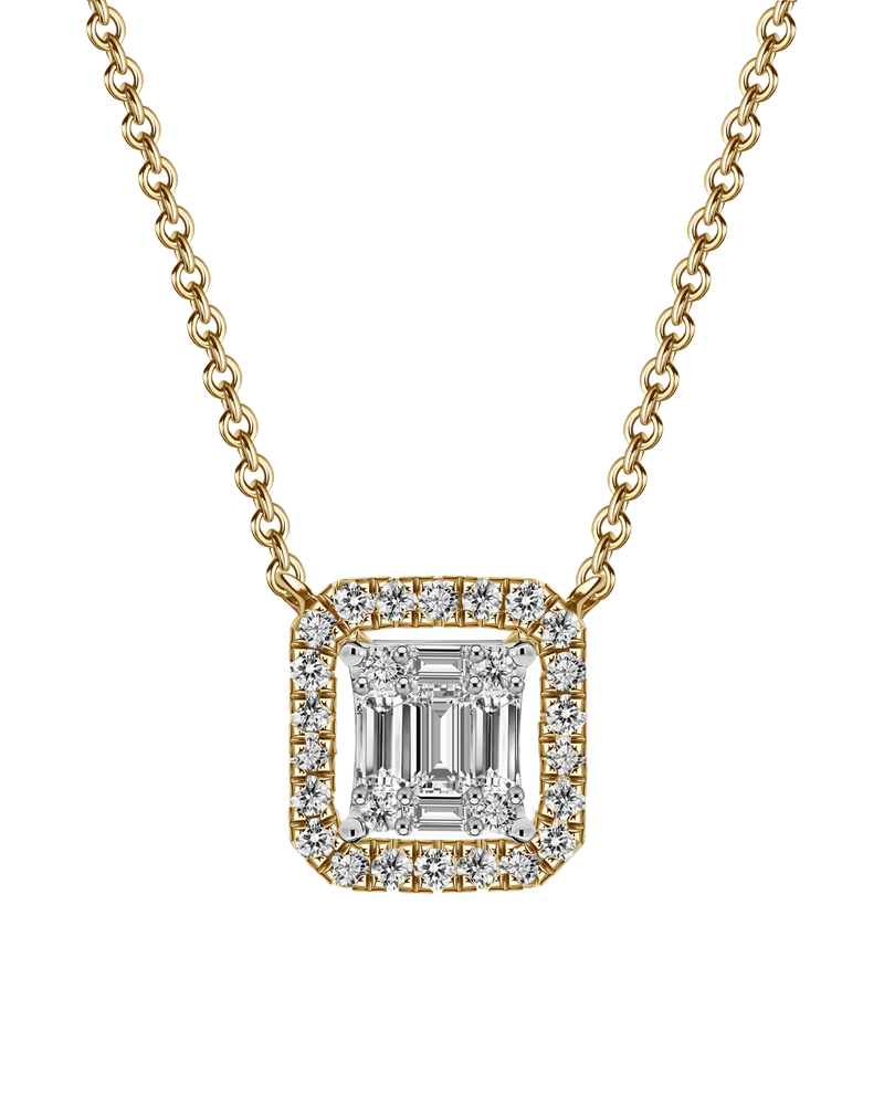 A very simple chain holds the stunning centerpiece of this accessory, made of diamonds encased in the underlying gold and silver design. A testament to elegance and allure.