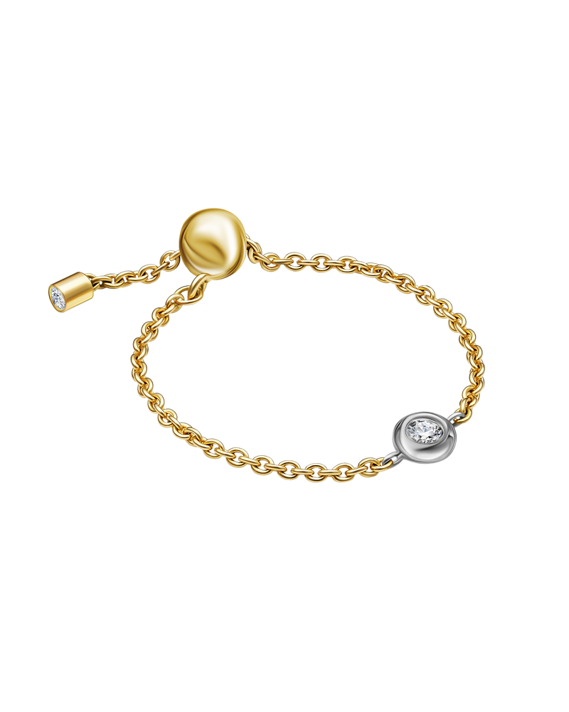 Dieser Ring ist eine einzigartige Goldkette und passt sich Ihrem Finger an. Mit einem Diamanten in der Mitte ist er ein echter Hingucker in jeder Sammlung.