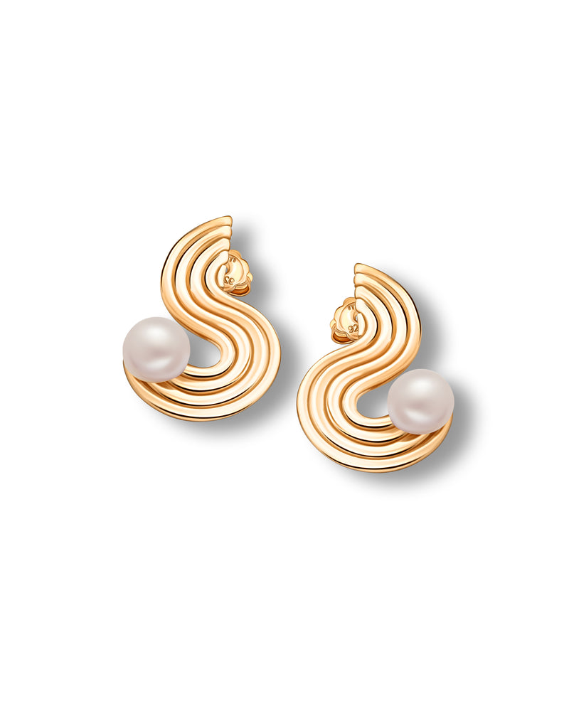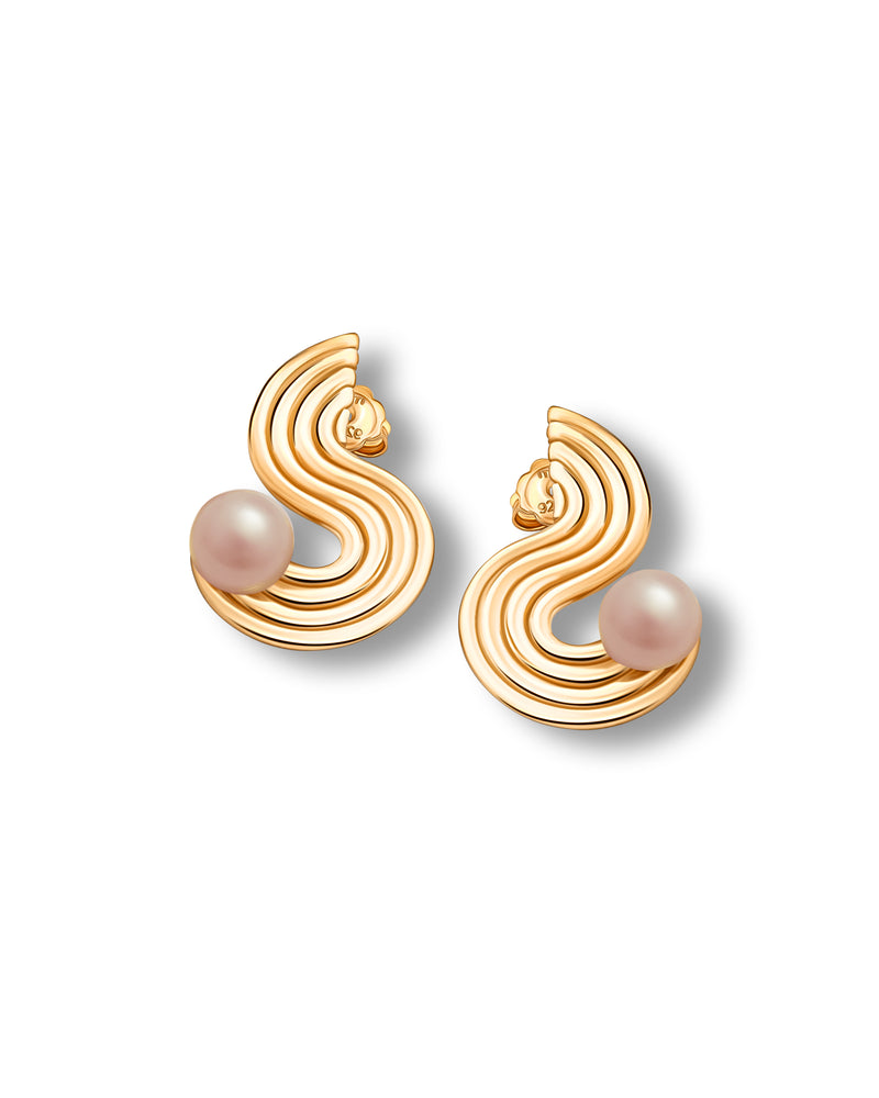 In diesem außergewöhnlichen Serpentinendesign strahlen die Perlen, die für ihr ätherisches Leuchten und ihre symbolische Bedeutung bekannt sind, ein Gefühl raffinierter Eleganz aus, während die goldenen Akzente einen Hauch von Glamour und Prestige verleihen.