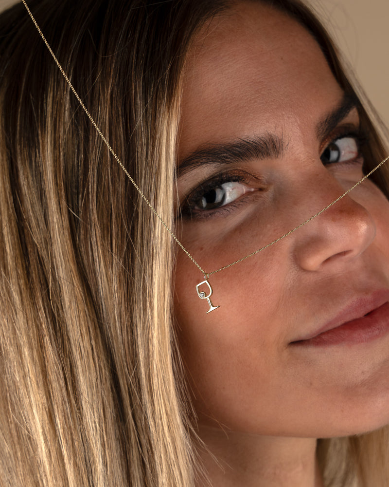 Wenn die Sonne beim Cocktail golden küsst, gibt es nur ein perfektes Accessoire. Dieses Stück spielt mit Diamanten und Gold und ist ein witziger Anhänger, den man auf der Sommerterrasse tragen kann.