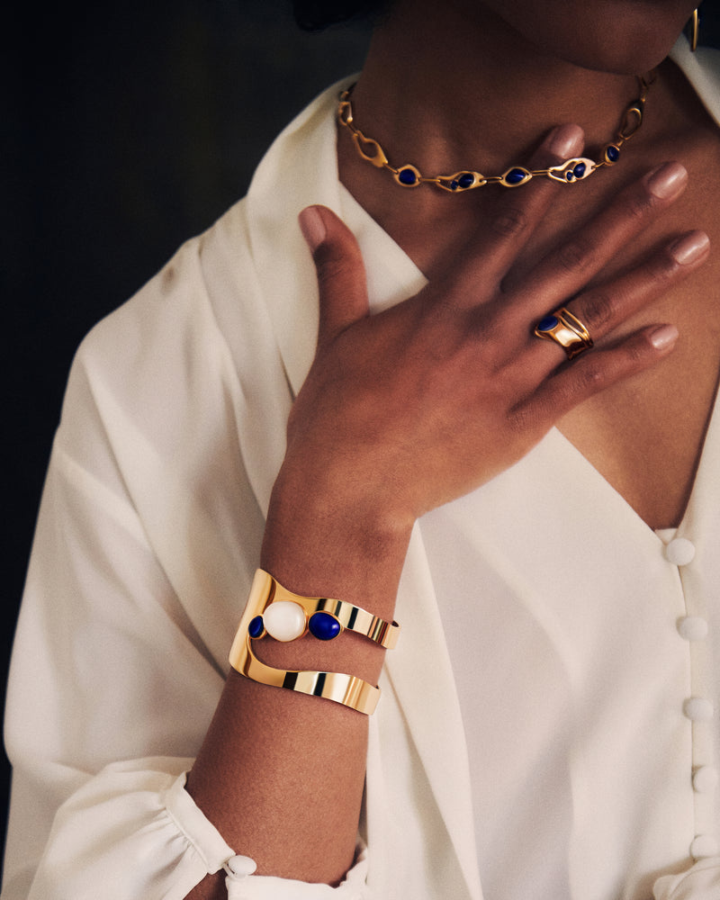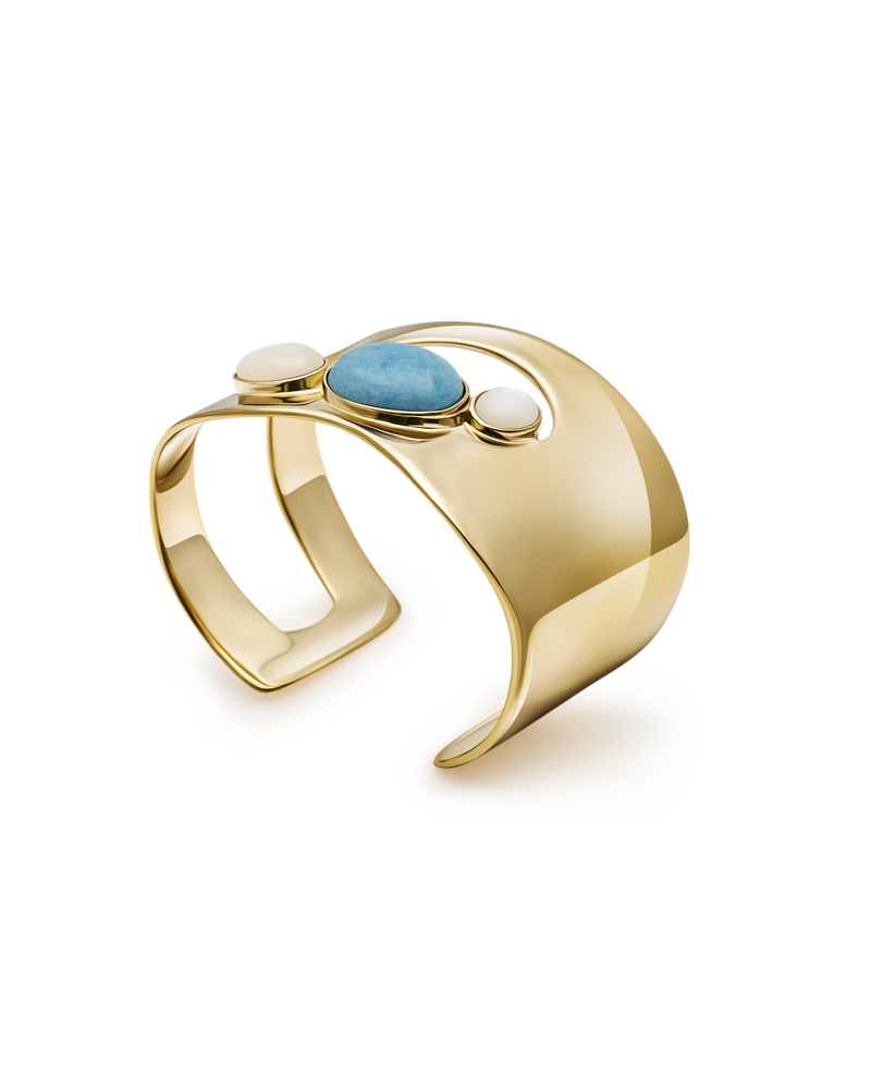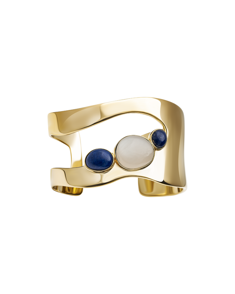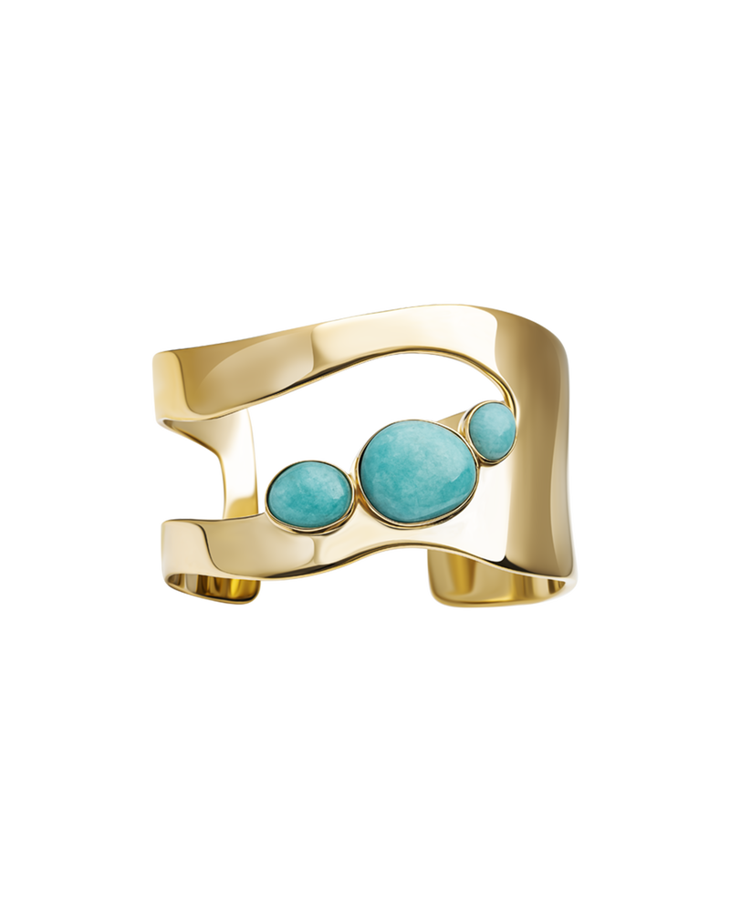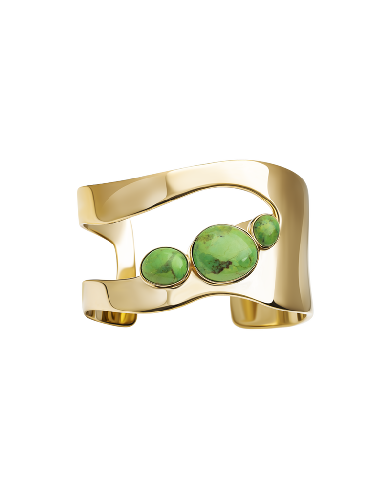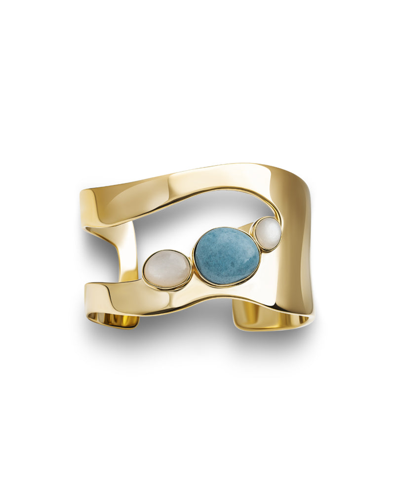 Die Steine hängen wie glitzernde Tränen herab und sind hier in einem Armreif eingefasst, der an antike Formen erinnert und unregelmäßige Formen zelebriert. Sie brauchen nichts anderes, um Ihr Handgelenk zu schmücken.