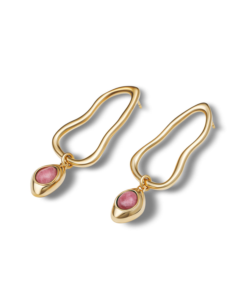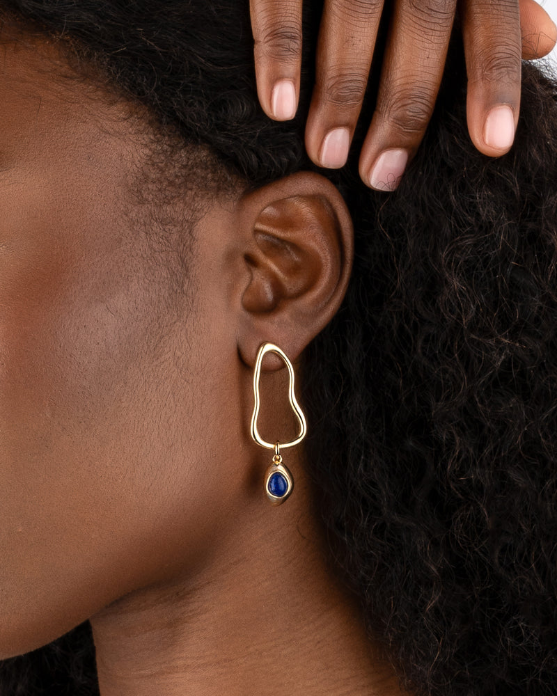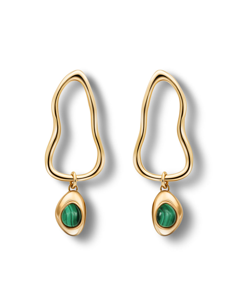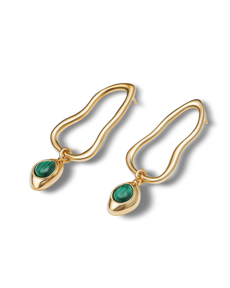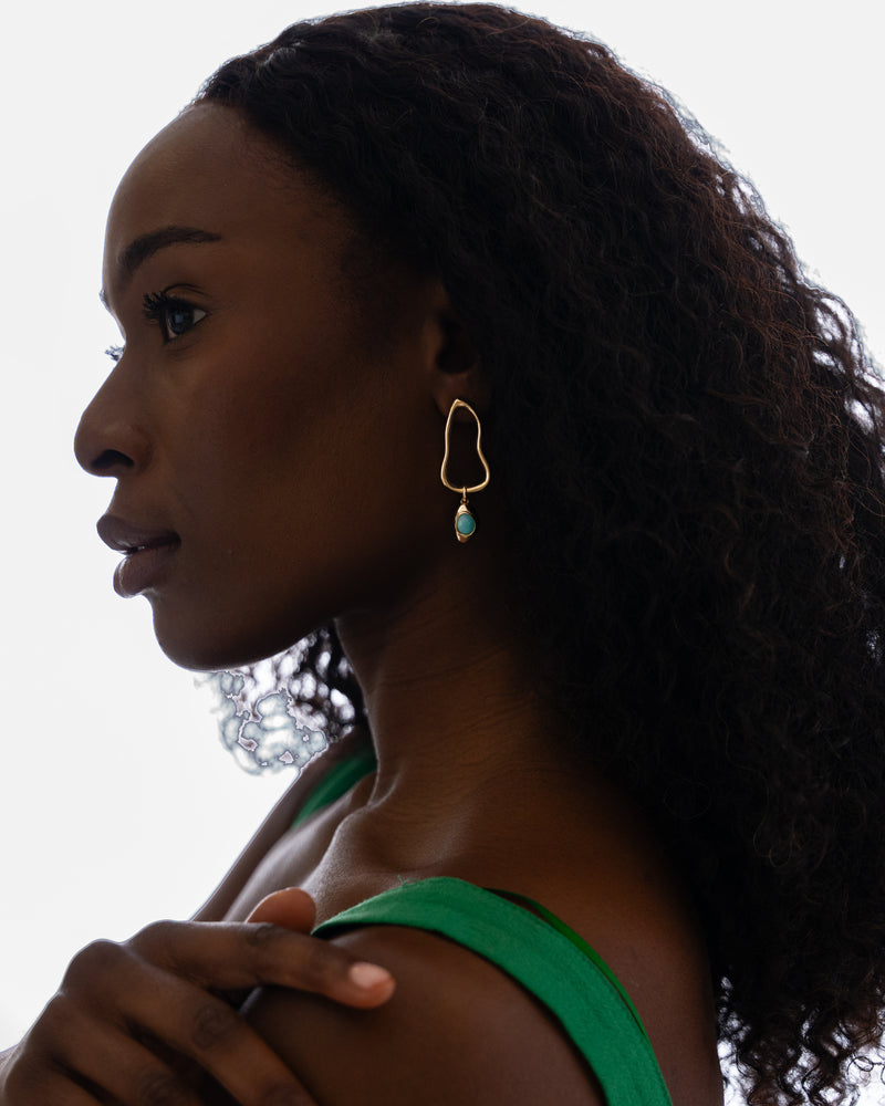 Wie Tropfen, die von einem Wasserfall herabfließen, baumeln die Edelsteine an goldenen Rahmen. Ein einzigartiges Design, das von der Natur und all ihren Wundern inspiriert ist.
