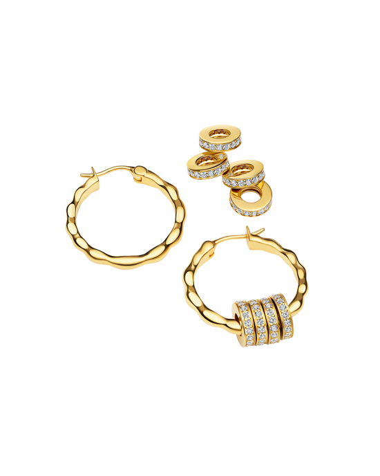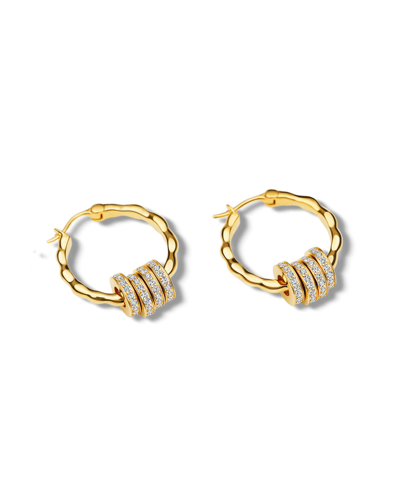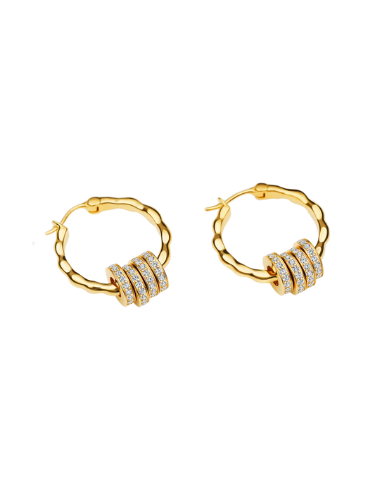 If you are looking for unmatched opulent elegance these earrings are just for you. Crafted with golden hoops and adorned with mesmerising blue round charms featuring a delicate pave setting, they effortlessly marry glamour with sophistication. The golden glow accentuates the rich blue hue, making them a versatile and chic.
