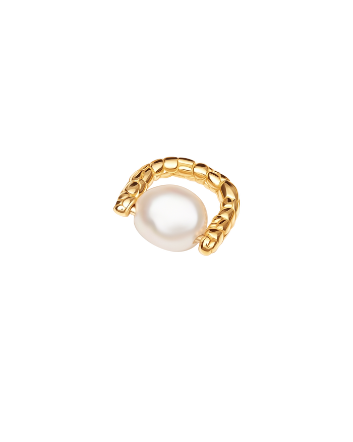 A delicate half hoop adorned with a captivating blue pearl. This accessory is the addition you didn't know your look needed! Seamlessly blending modern design with classic allure the lustrous silver embraces the enchanting blue pearl, creating the perfect harmony.