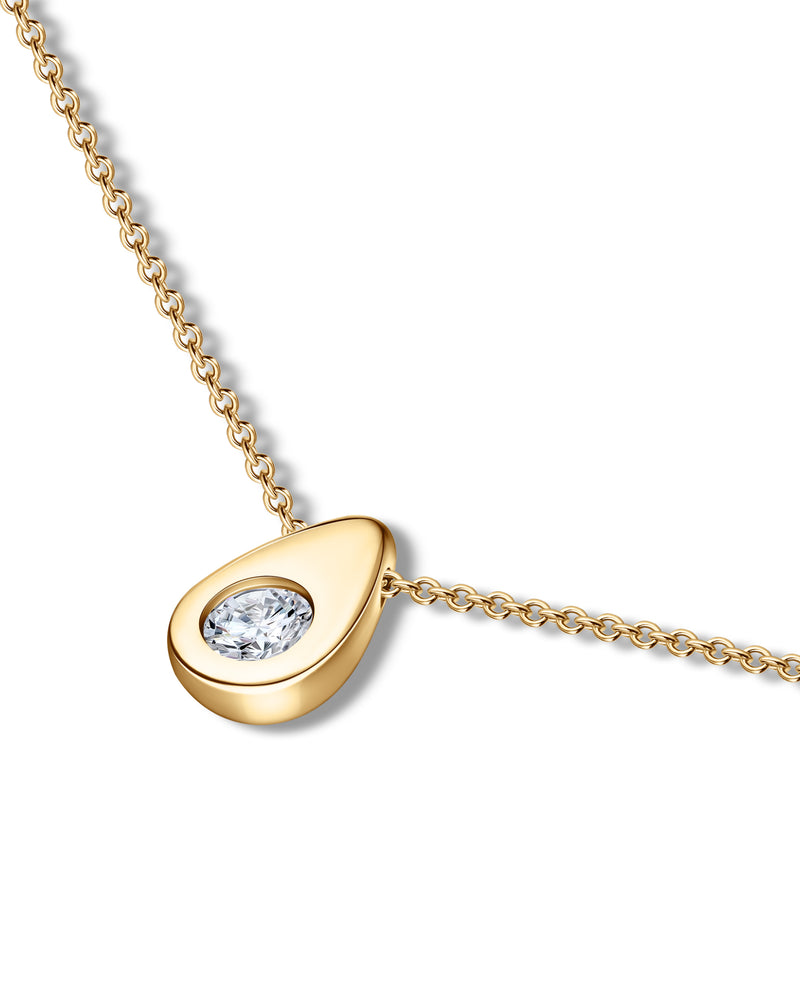 The Festive Grace Pendant is the epitome of simplicity and elegance. A single round-cut diamond is set in a timeless elongated setting, allowing for a more original angle on a classic piece.