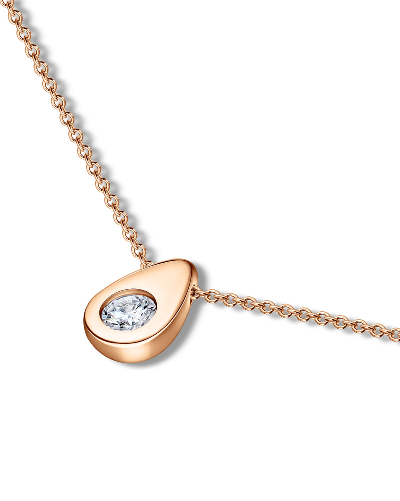 The Festive Grace Pendant is the epitome of simplicity and elegance. A single round-cut diamond is set in a timeless elongated setting, allowing for a more original angle on a classic piece.