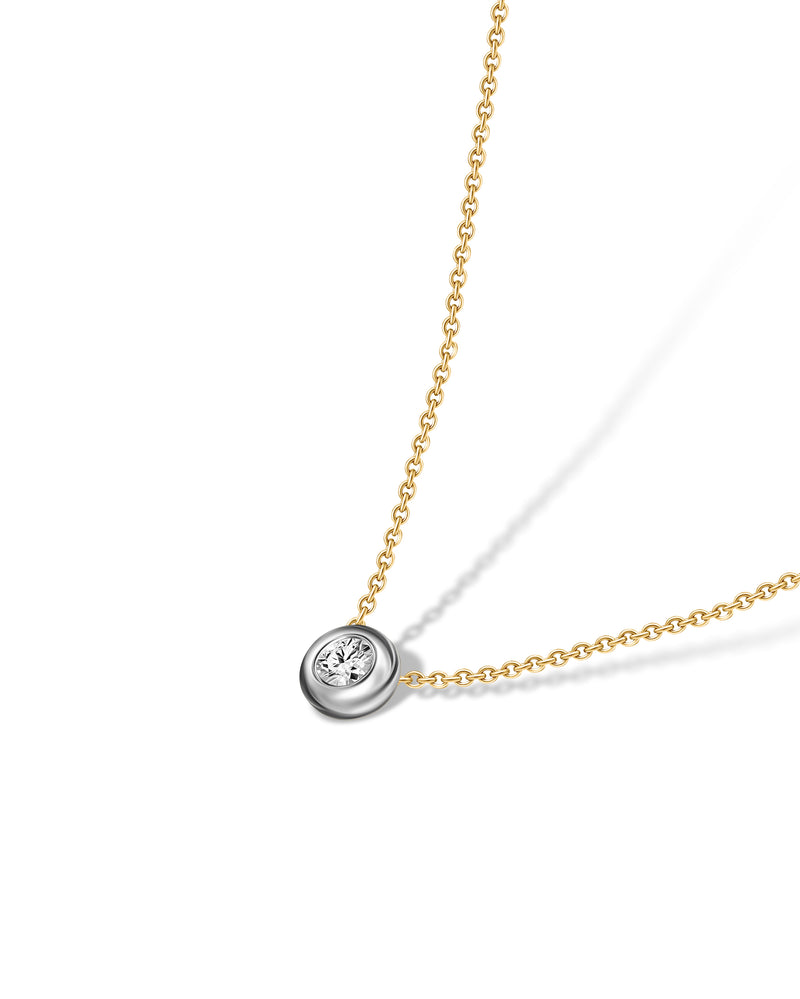 Symbolising the purest form of brilliance, this necklace is adorned with a single round-cut diamond set in an elegant gold chain.