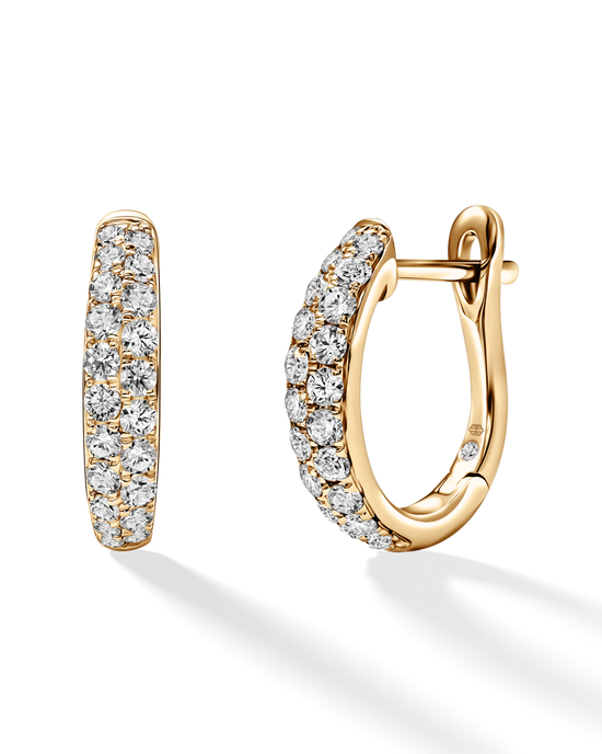 Embrace the allure of understated luxury with the classic design of these hoops. Coupled with the brilliance of carefully selected diamonds, it creates an exquisite accessory that effortlessly complements any style. They add a touch of refinement to both a formal event or simply casual outing.