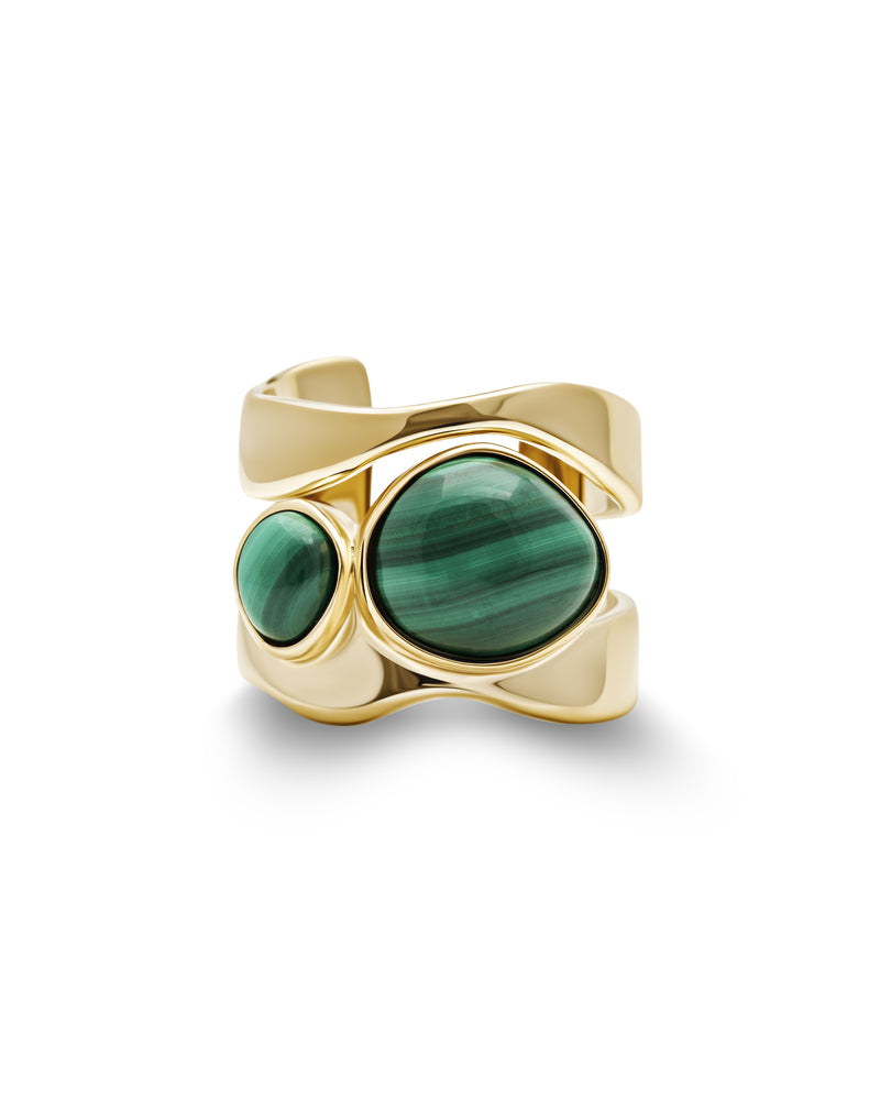 Nature's colours are united with the fluidity of watery curves in a ring that embodies the elements as a homage to nature. Your hand will be bright with glistening reflexes.