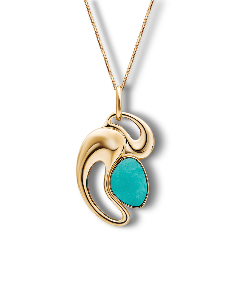 Featuring a striking gemstone, this pendant captures the essence of the ocean's mysterious beauty, thanks to a game of curves and waves.
