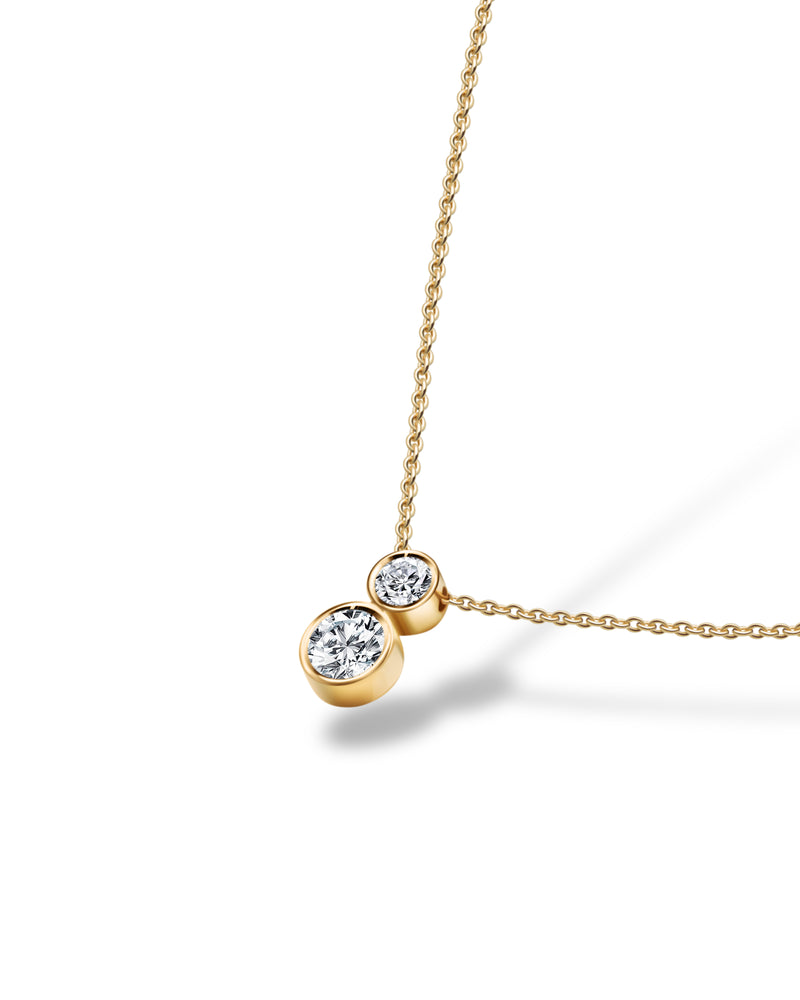 This pendant features a dazzling diamond couple suspended from a gold chain. The design and sparkling diamonds make it a captivating piece that adds a fine touch to any ensemble.