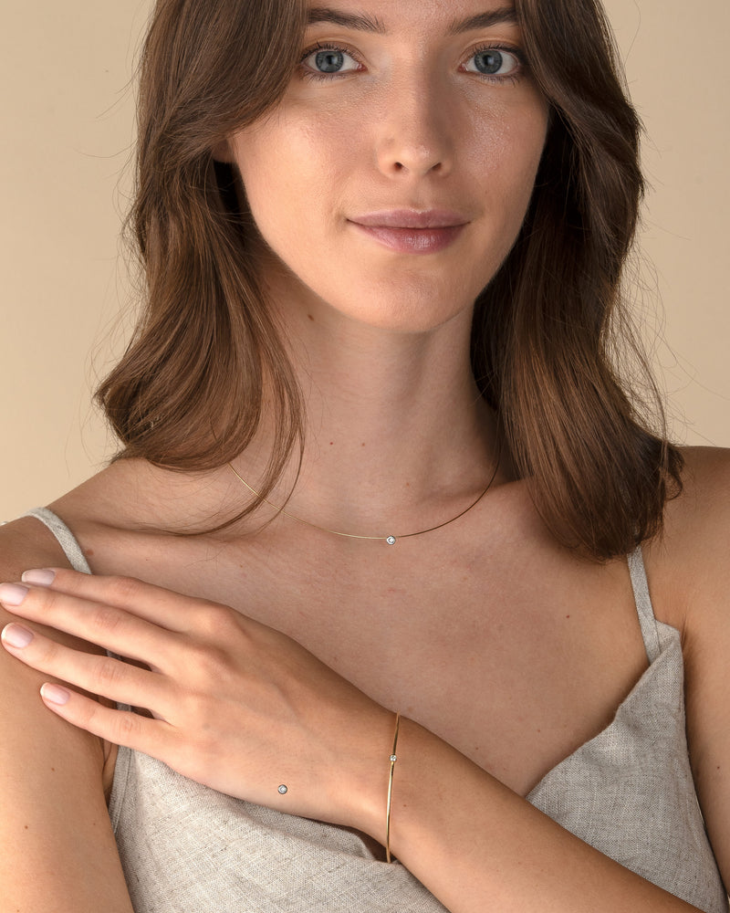 A classic and elegant piece, this necklace showcases a single solitaire diamond suspended from a round gold chain. Its minimalist design ensures it will be cherished for years to come.