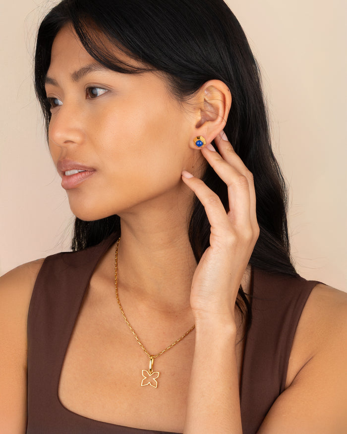 Timeless and elegant, these gold studs showcase flawless golden design, enriched by a precious gem, ideal for both everyday wear and special occasions.